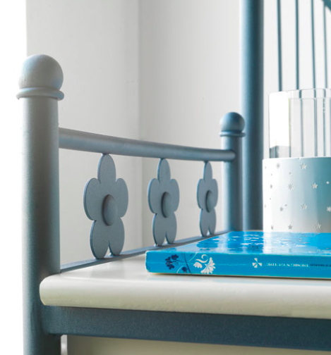 Cabecero de forja con flores.