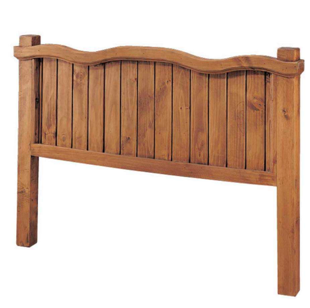 Cabecero de madera maciza para cama individual con colchón de 90 cm. La parte superior del cabecero tiene una forma curva mientras que la parte del centro está formada por un machihembrado con listones de madera maciza.