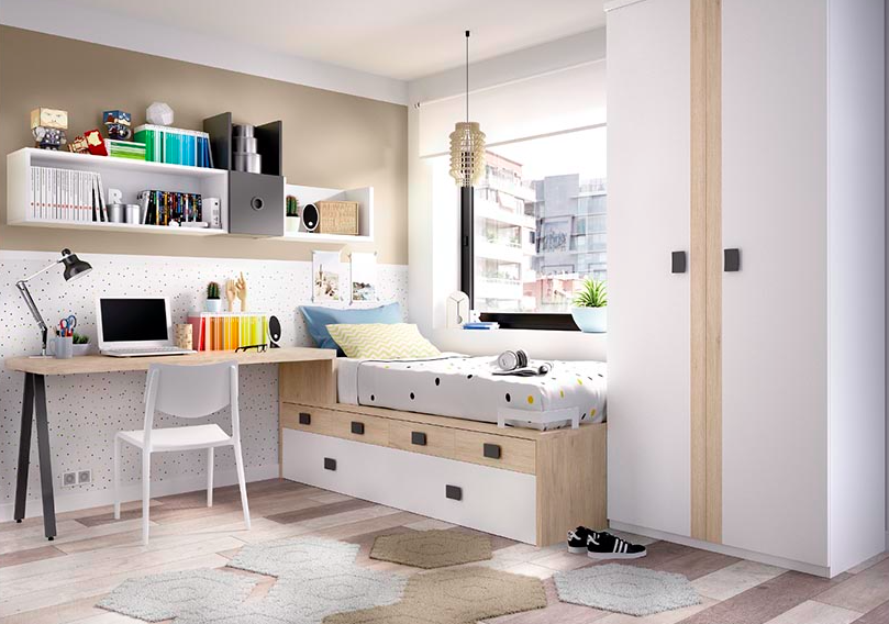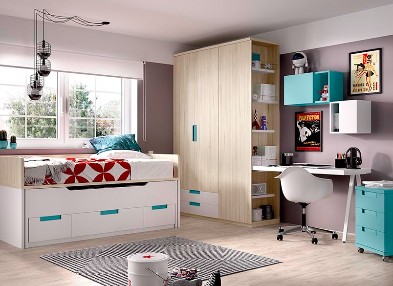 Dormitorios con cama nido, con variedad de colores y de mobiliario para las habitaciones de los peques de la casa.