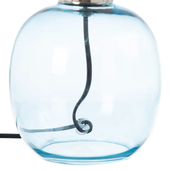 Lampara de cristal azul tulipa de lino blanco.