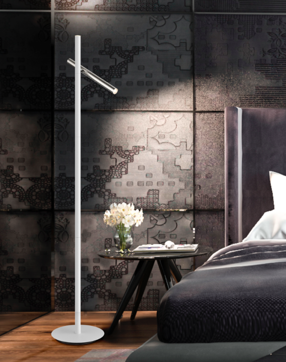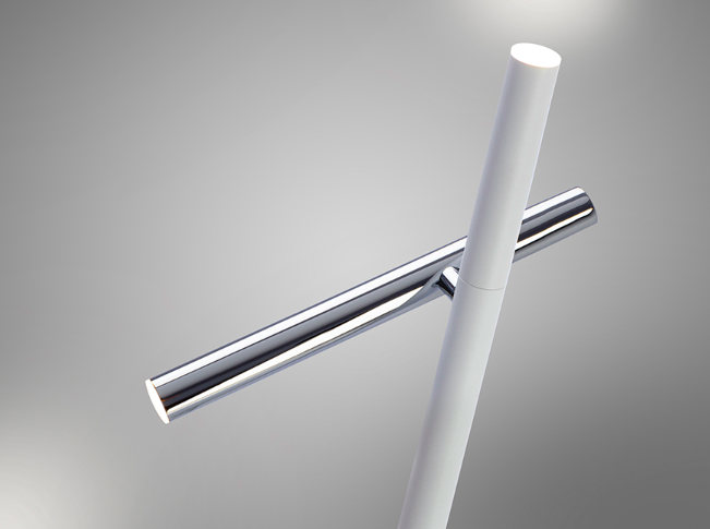 Material: metal acabado cromo y blanco mate. Difusor acrílico opal.10W LED, 900 lm, 3.000 K. Medidas: alto 167 cm ,base 41 x 30 cm.