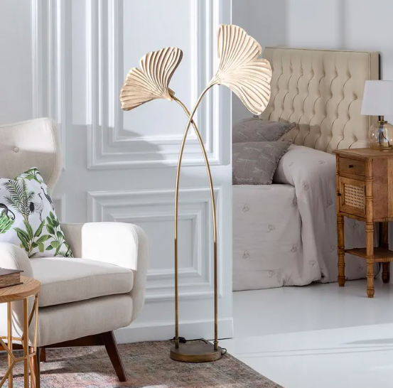 Lámpara suelo hojas oro metal