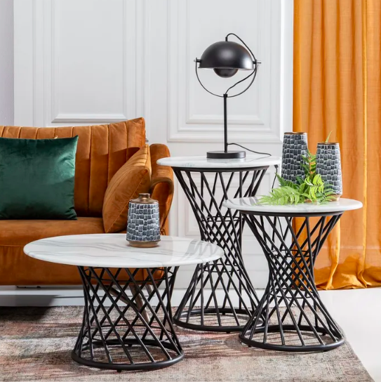 Mesa auxiliar blanco-negro , metal- cemento