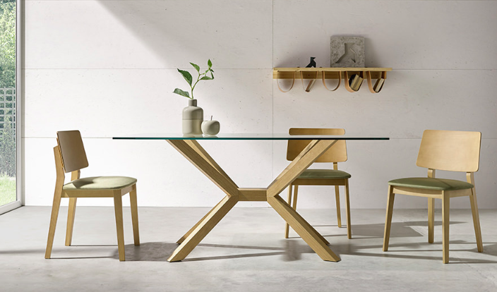 Mesa comedor rectangular tapa de cristal, fija.