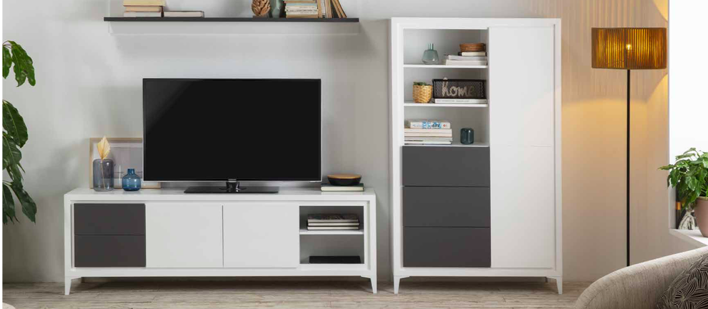 Coleccion Mara , diferentes opciones para amueblar el salon de tu casa, fabricado en material fibra de madera, acabado con lacas. Diseño actual y moderno para cualquier estancia del hogar.